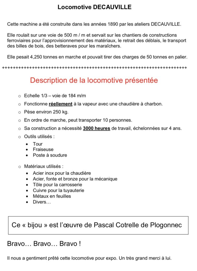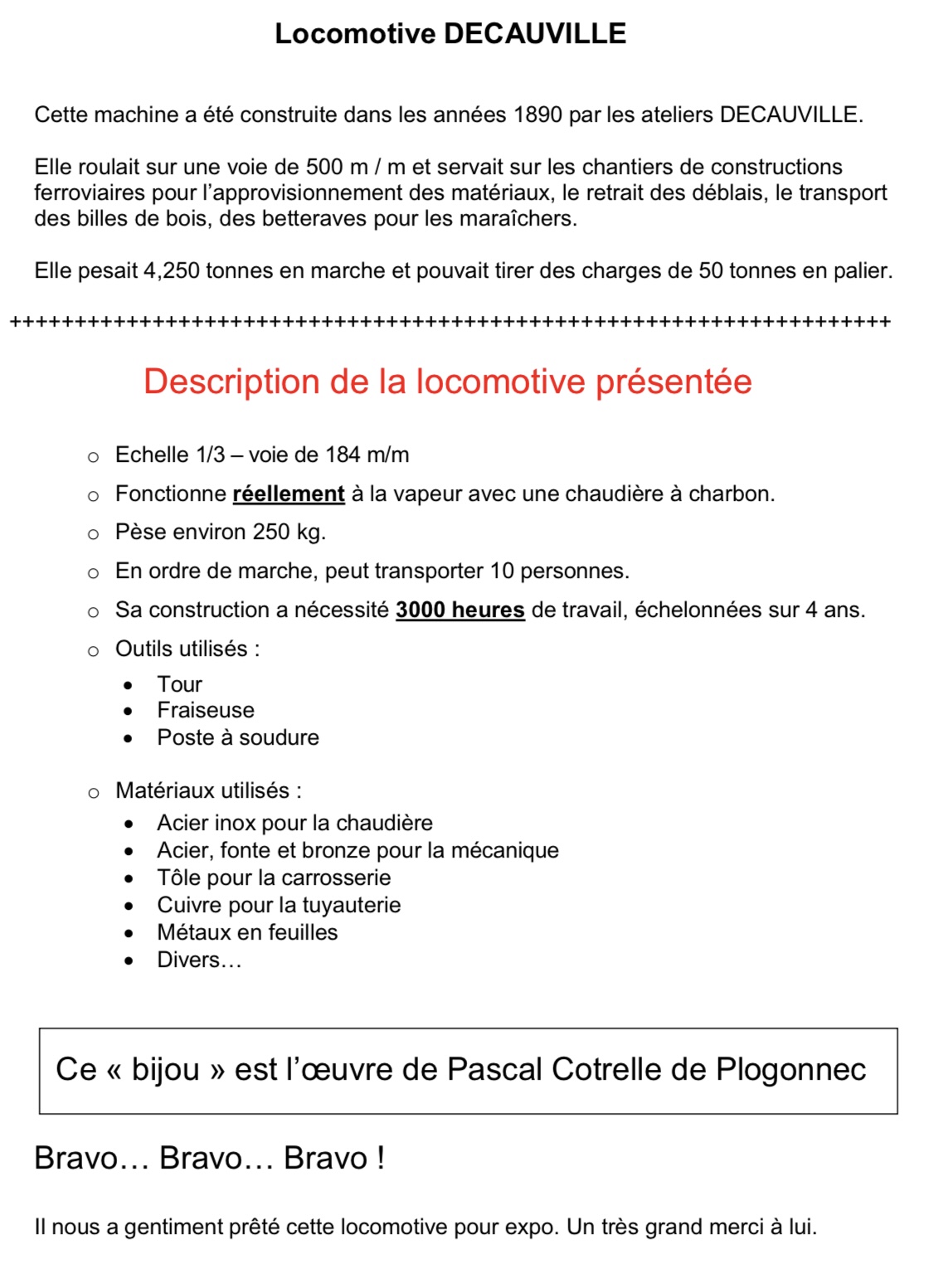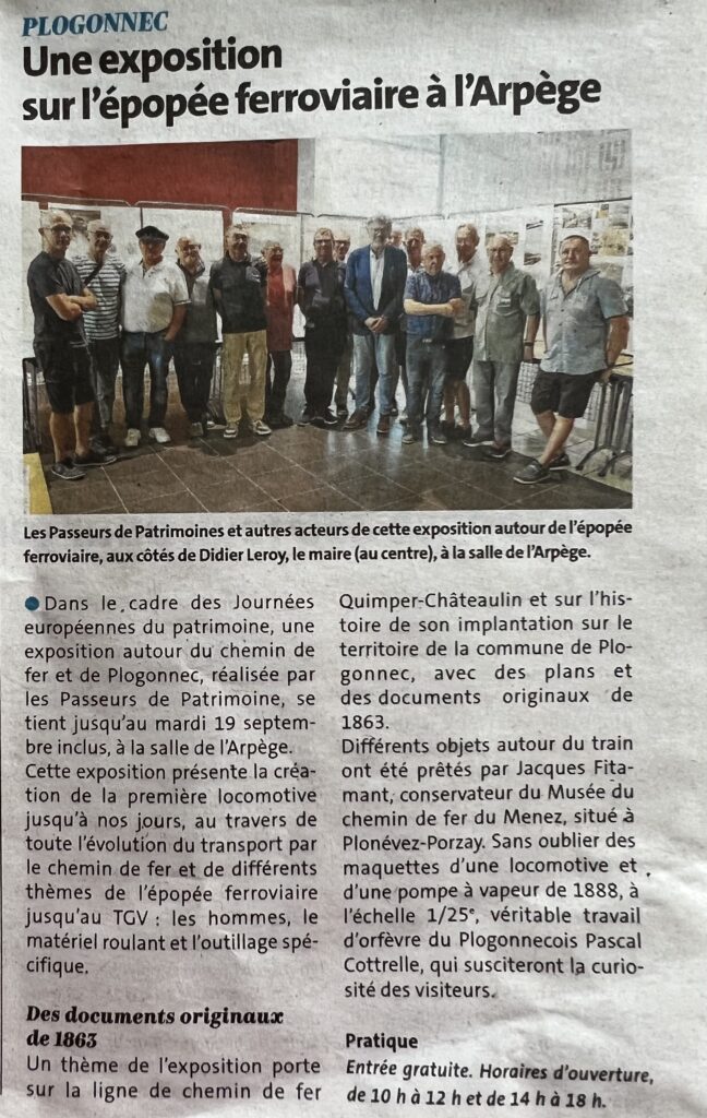 Exposition : le chemin de fer et Plogonnec du 16 au 19 septembre 2023.